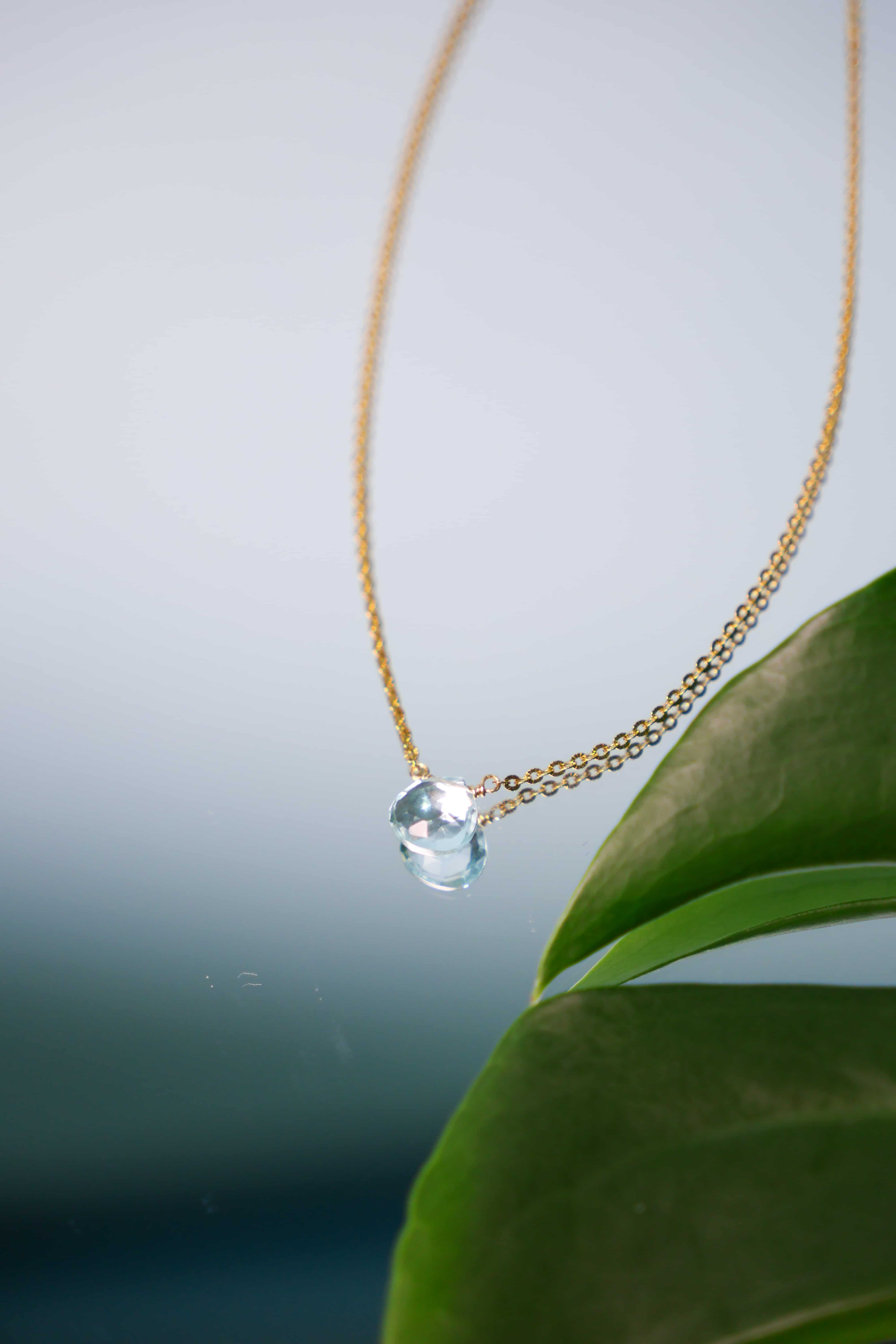 Com 40cm de comprimento, apresenta apenas uma gota de Topázio ao centro, criando um ponto de luz discreto e elegante.
